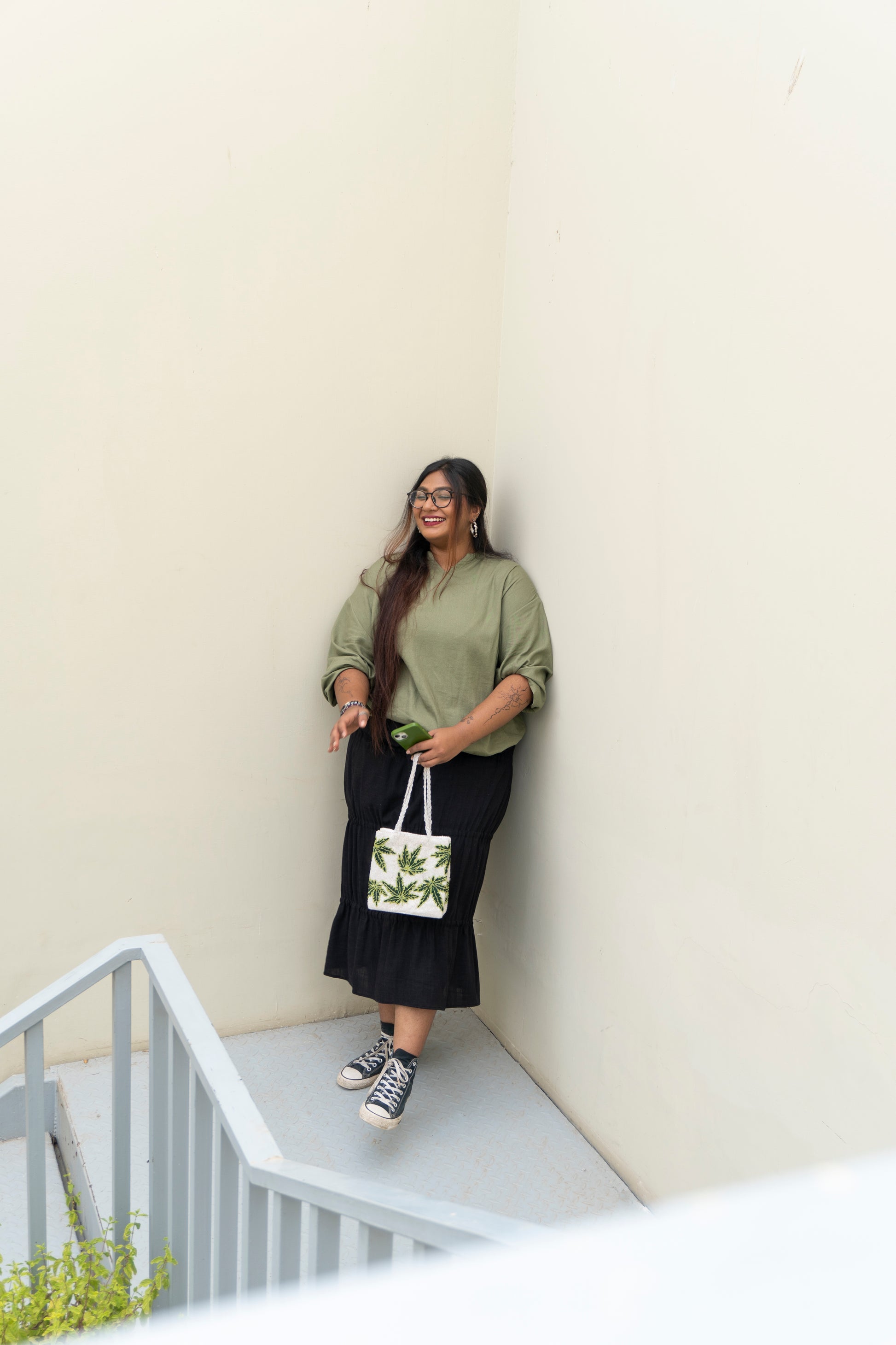 A crisp white tiered skirt with texture and movement. Midi-length and effortlessly feminine.