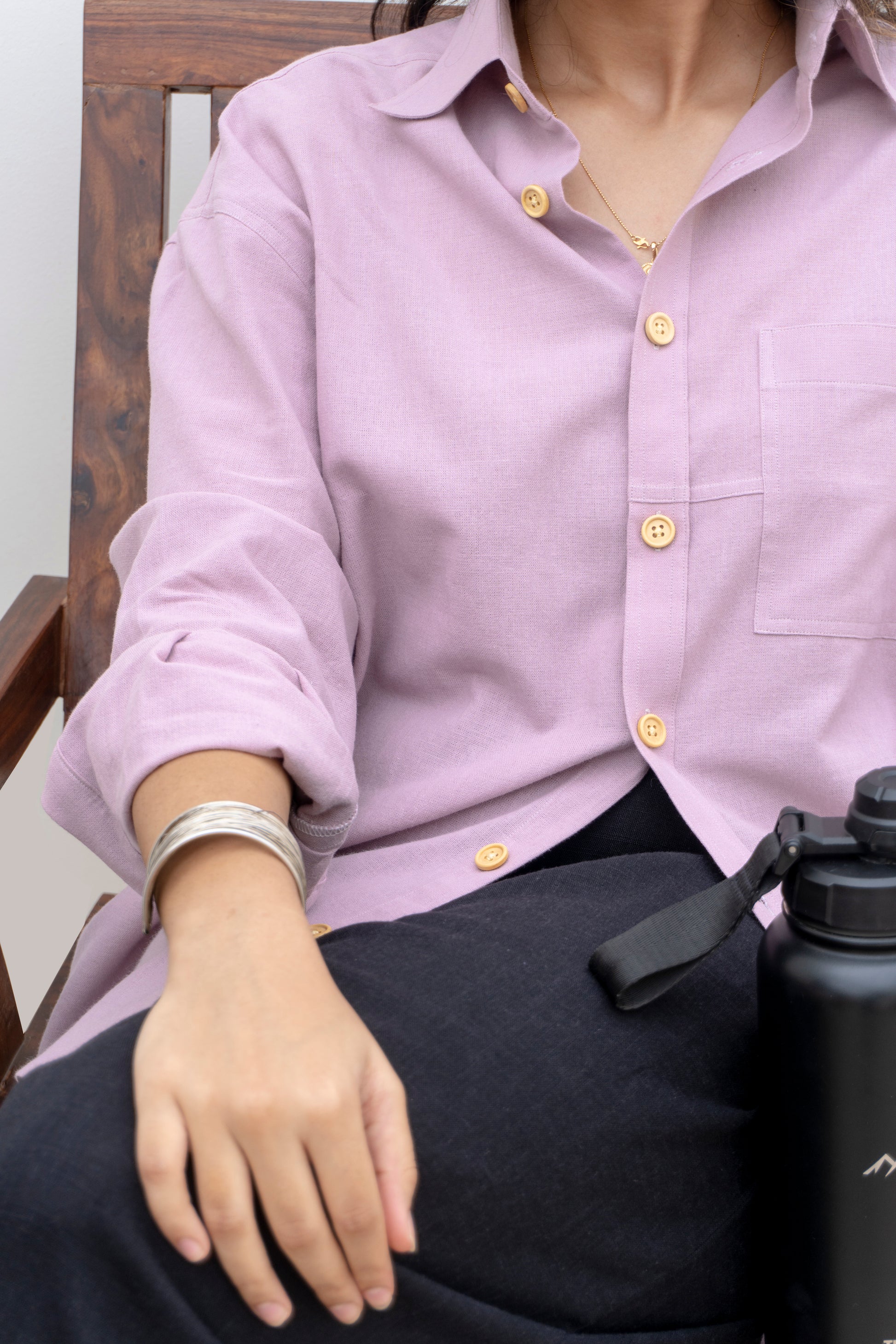 We made our classic drop-shoulder button-down shirt from a breathable linen and cotton blend for a relaxed yet refined feel. Featuring a soft collar, patch pocket with a subtle line detail for a fresh update, and a deep round hem. The upgraded silhouette builds on our original design, offering an easy drape and elevated style that works just as well with tailored separates as it does with laid-back looks.